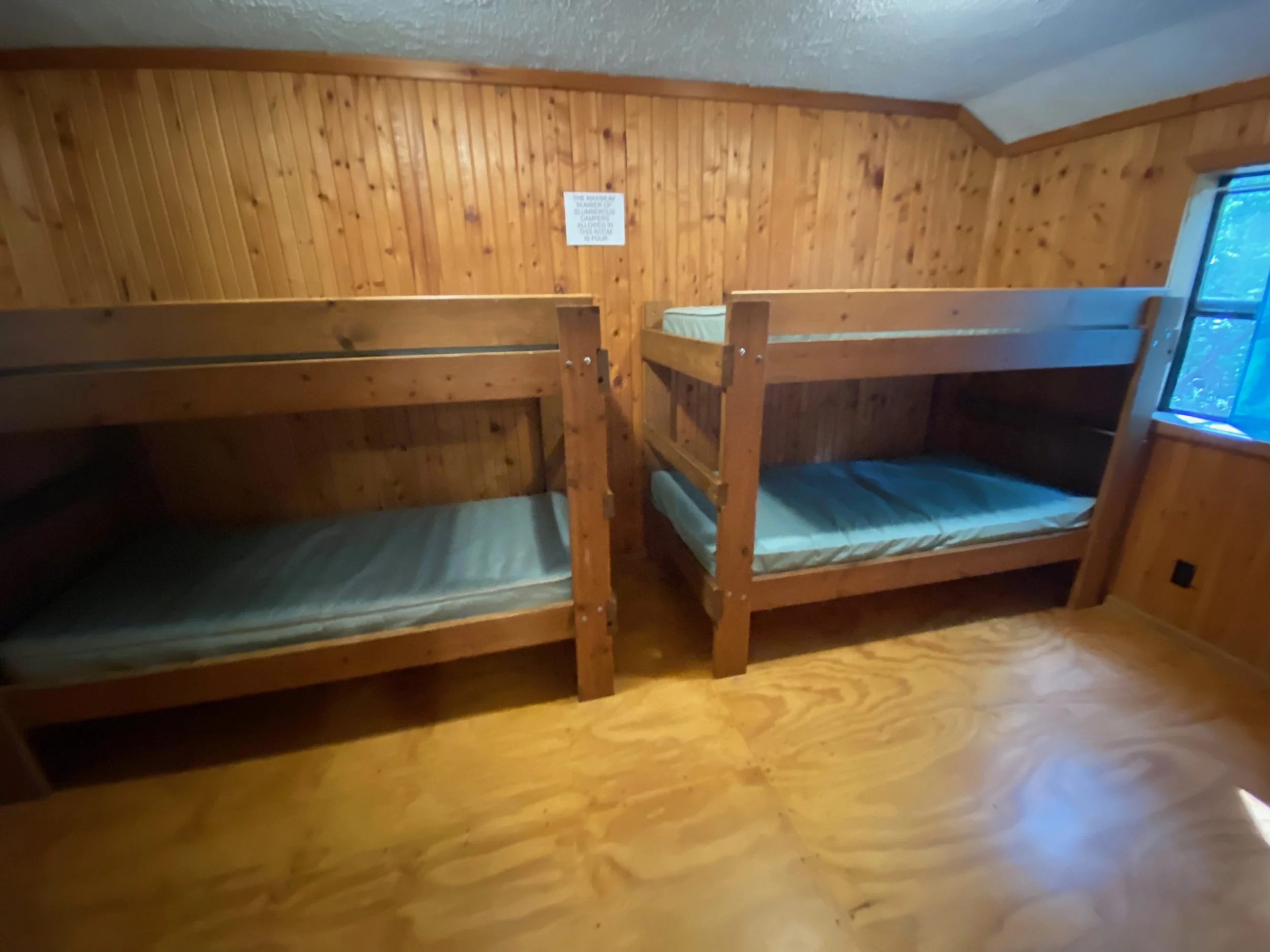 This includes a mix of small 4-5 person cabins and larger group bunkhouses (more details below). Cabins and group bunkhouses are comfortable but semi-rustic, with electricity, screened windows, and twin XL bunkbeds and mattresses in each cabin.